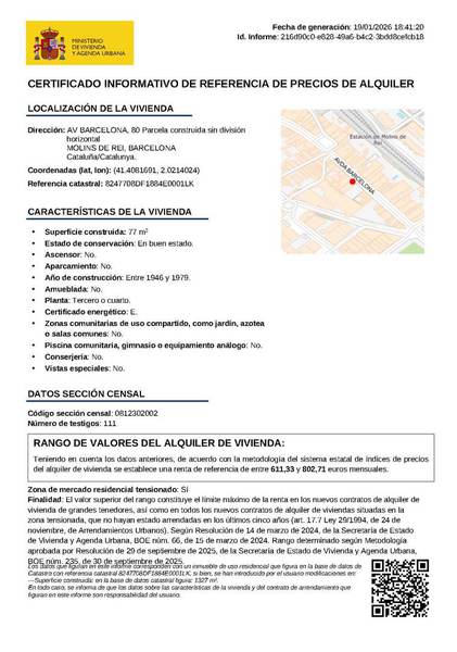 Preu Lloguer: 700,00 + Llum escala + Neteja Escala (8,54 €/mes) + IBI (diferencies anuals) + Impost residus (95,93 € / Any 2025)+ Taxa Metropolitana (19,13 € / Any 2025)